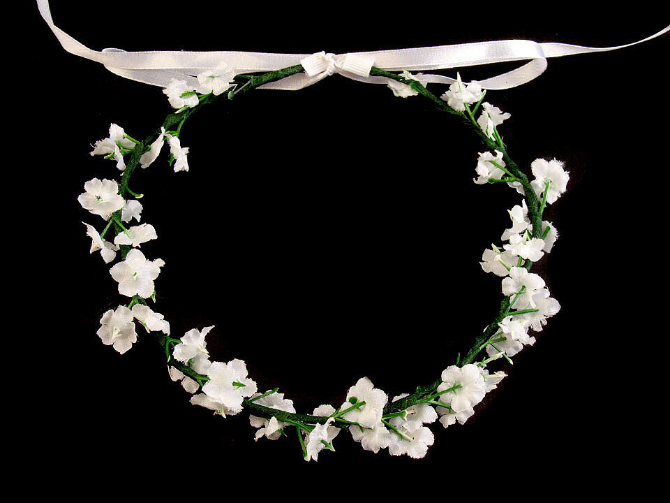 Dodajte svému účesu neodolatelný kouzelný dotek s tímto bílým květinovým věnečkem! Je to perfektní doplněk, který krásně podtrhne nevinnost a slavnostní atmosféru zejména pro malé družičky i dívky při Prvním svatém přijímání.