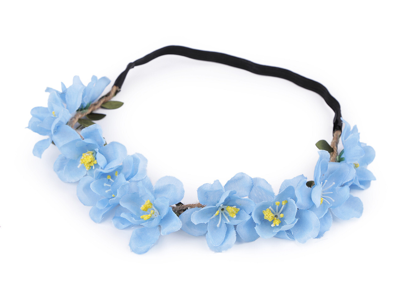 Pružná čelenka do vlasů s květy - 1 ks - 2 modrá světlá