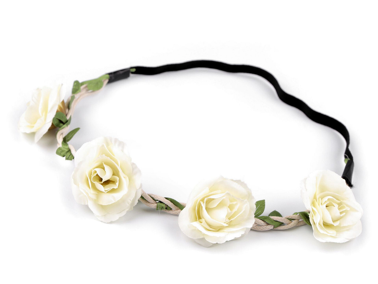 Pružná čelenka do vlasů s květy - 1 ks - 8 (Ø3,5 cm) krémová světlá