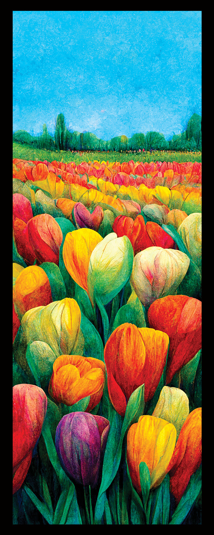 - Originální design s motivem barevných tulipánových záhonů
