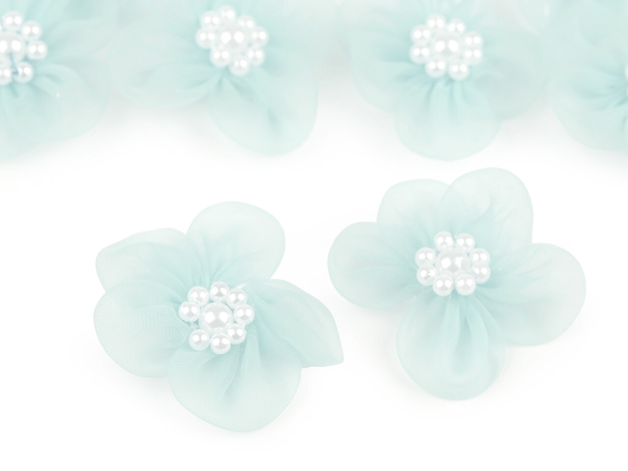 Monofilový květ Ø3-3,5 cm s perlami - 10 ks - 9 mint