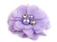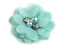 Textilní květ působí jemně a romanticky. V jeho středu jsou našité plastové korálky a broušené kamínky, které se efektně třpytí.