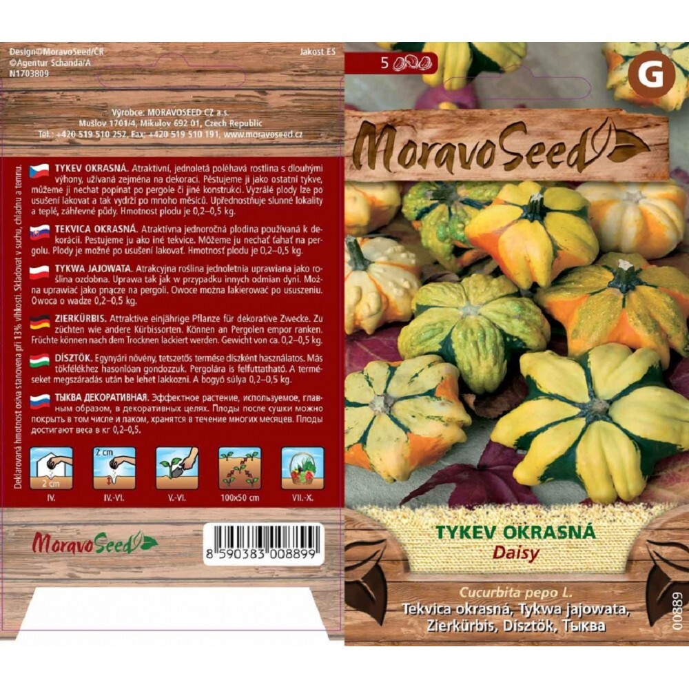 Atraktivní, jednoletá poléhavá rostlina s dlouhými výhony užívaná zejména na dekoraci. Pěstujeme ji jako ostatní tykve, můžeme ji nechat popínat po pergole či jiné konstrukci. Vyzrálé plody lze po usušení lakovat a tak vydrží po mnoho měsíců. Upřednostňuje slunné lokality a teplé, záhřevné půdy. Hmotnost plodu je 0,2-0,5 kg.