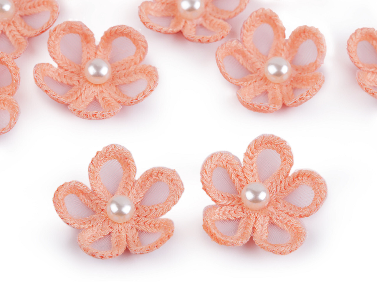 Monofilový květ s perlou Ø2,5 cm - 10 ks - 8 lososová