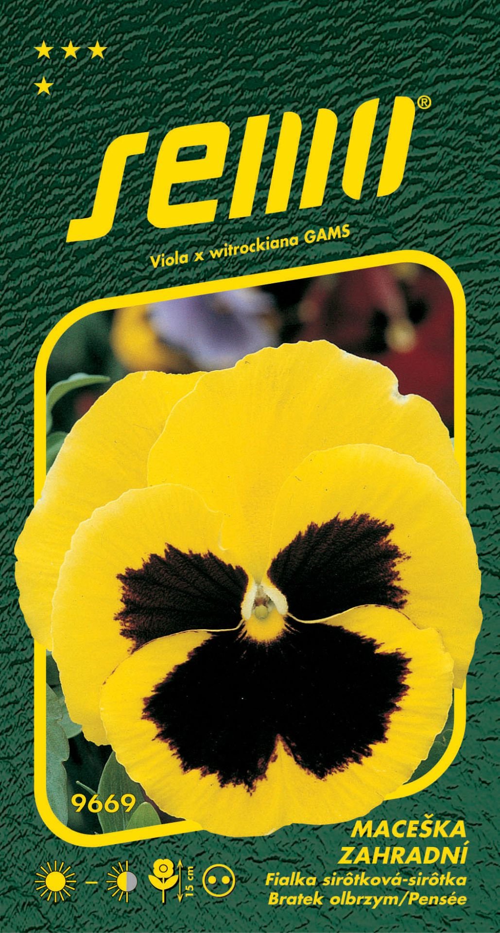 Velké žluté květy s tmavým okem, výška 15cm. Oblíbená dvouletka používaná pro skupinové záhonové výsadby. Vyhovují ji slunná i mírně zastíněná stanoviště, nesnáší však sucho a úpal. Je citlivá na zaschnutí při klíčení, výsev je nutno udržovat stále vlhký.