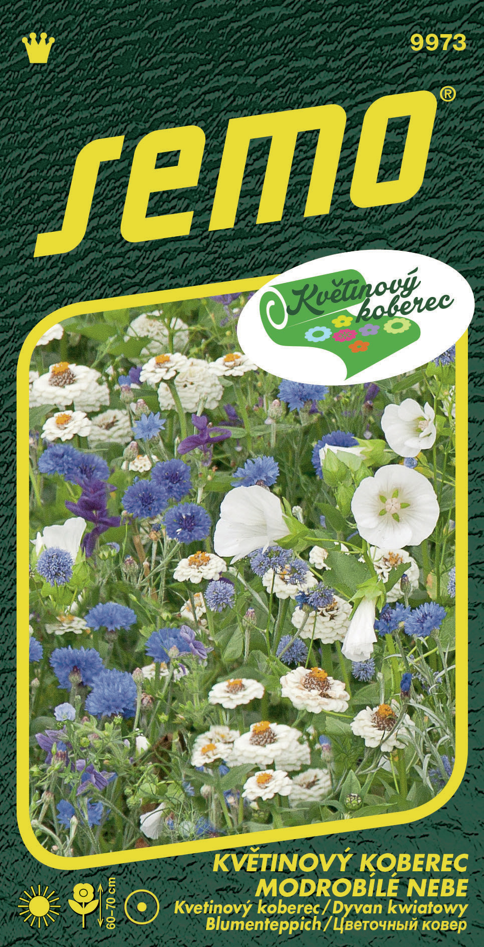 Směs Modrobílé Nebe z kolekce Květinový koberec je ideální volbou pro všechny, kdo chtějí na své zahradě vytvořit krásnou a živou kombinaci letniček v jemných modro-bílých odstínech. Tato směs obsahuje 17 druhů květin, například modré chrpy a nestařce, které jsou krásně doplněny bílými květy cínie či slézovky. Výsledkem je působivý květinový koberec vysoký 60-70 cm, který oživí každý prostor.