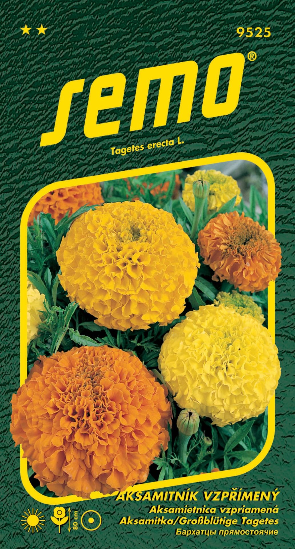 Aksamitník vzpřímený - Double grande směs je ideální volbou pro každého zahrádkáře, který hledá rostlinu s bohatým a dlouhotrvajícím květem. Tento vzpřímený letničkový druh přinese vašim záhonům živou a pestrou barevnost a díky vhodnosti k řezu vám umožní mít květiny i ve váze po několik dní.
