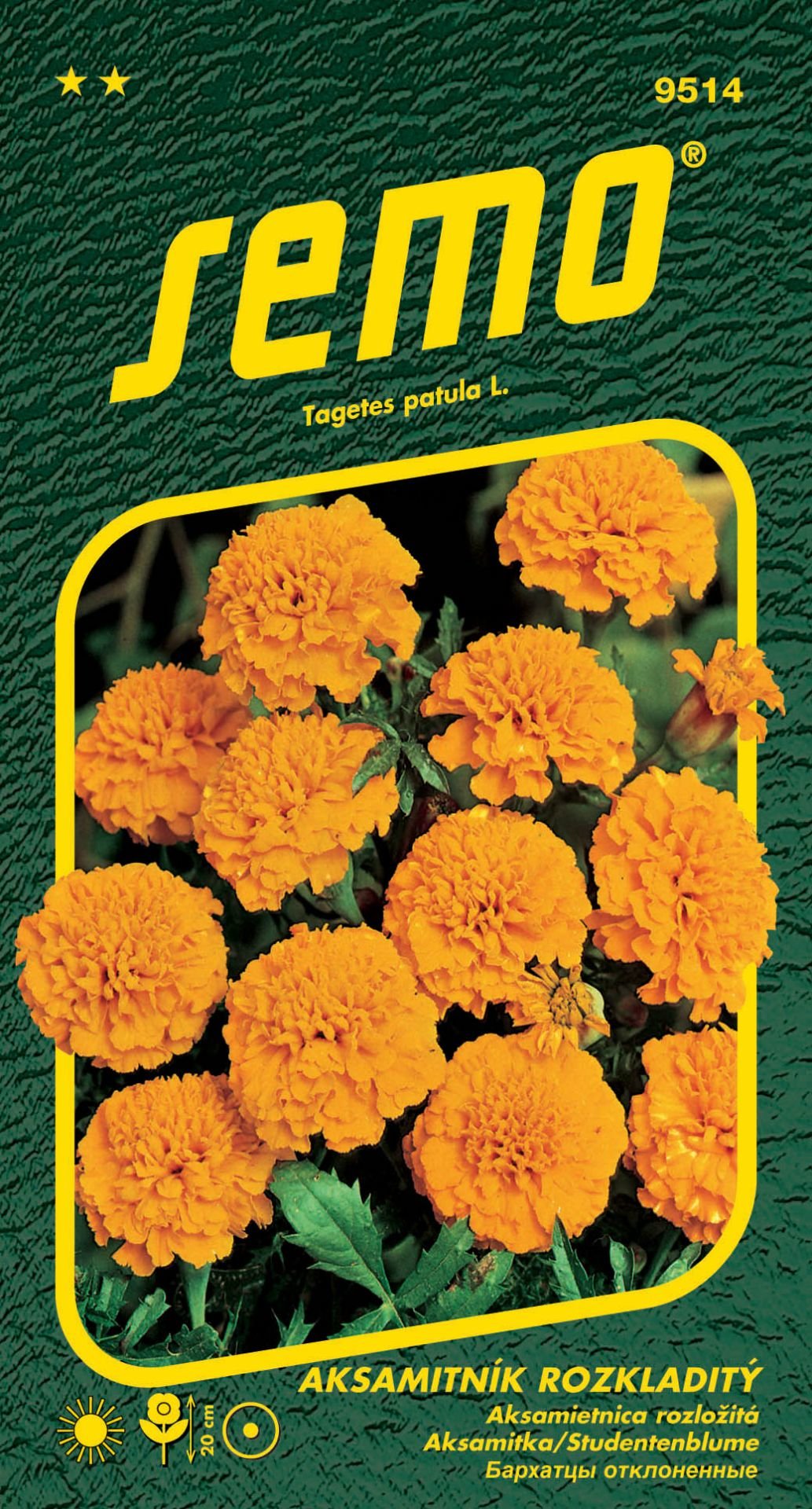 ODRŮDA: Aksamitník rozkladitý - Petit oranžový 1g (kód 9514)Popis:Bohatě kvetoucí letnička s aromatickými listy určená na záhonové výsadby, obruby, do okenních truhlíků a ozdobných nádob. Nenáročná na pěstování, bohatě kvetoucí po celý rok. Vysazováním aksamitníku kolem citlivých rostlin nebo do skleníků se účinně odpuzují hmyzí škůdci zeleniny. Kořeny obsahují látky potlačující půdní háďátka.Výsev: březen - duben