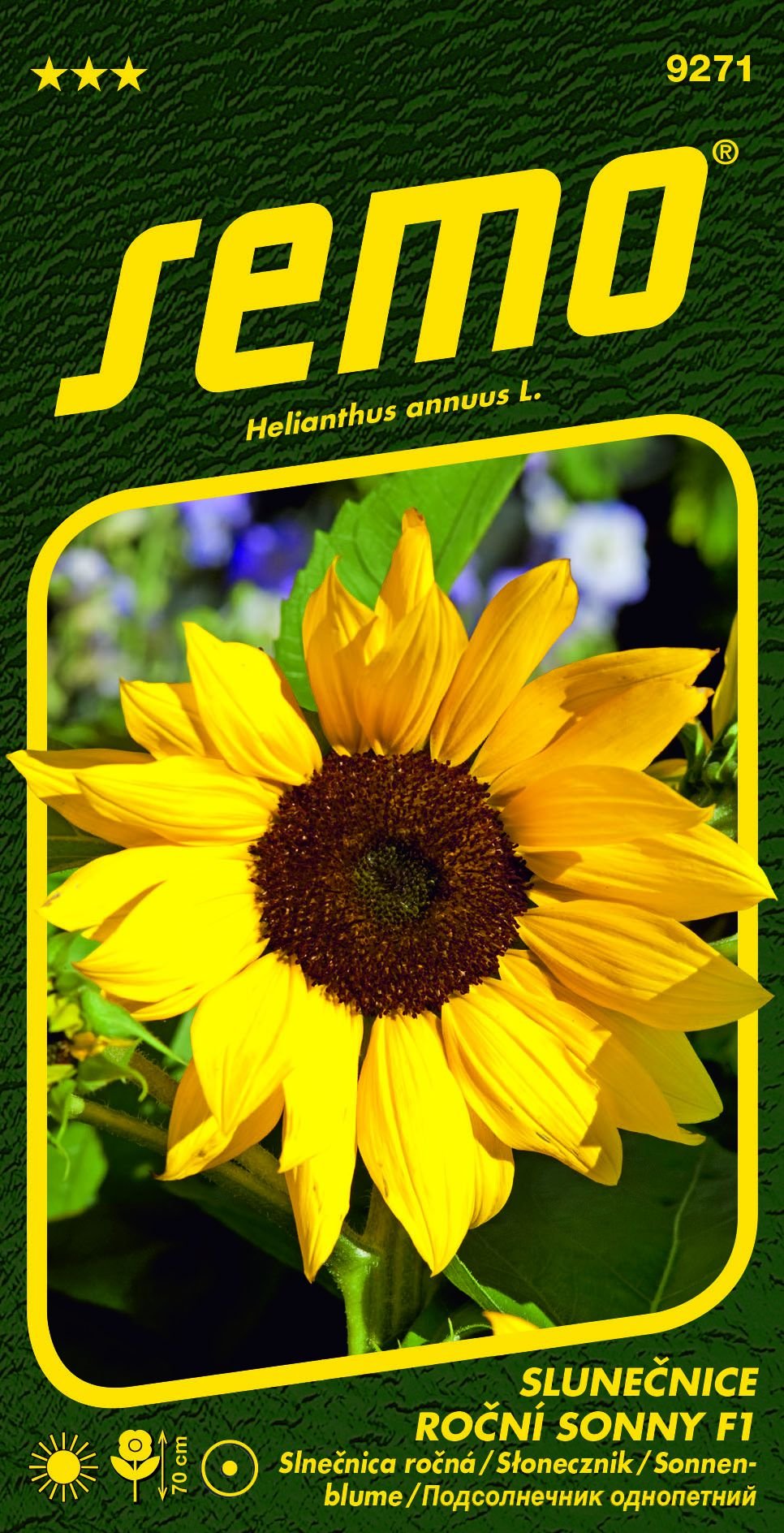 Slunečnice nižšího vzrůstu (70 cm) vhodná pro pěstování v nádobách. Květy jsou zlatavě žluté, sterilní, vhodné pro alergiky.