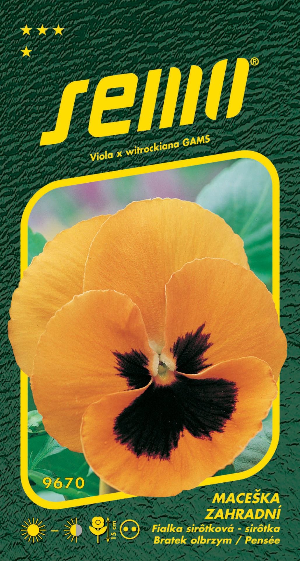 Velké oranžové květy okem, výška 15cm. Oblíbená dvouletka používaná pro skupinové záhonové výsadby. Vyhovují ji slunná i mírně zastíněná stanoviště, nesnáší však sucho a úpal. Je citlivá na zaschnutí při klíčení, výsev je nutno udržovat stále vlhký.