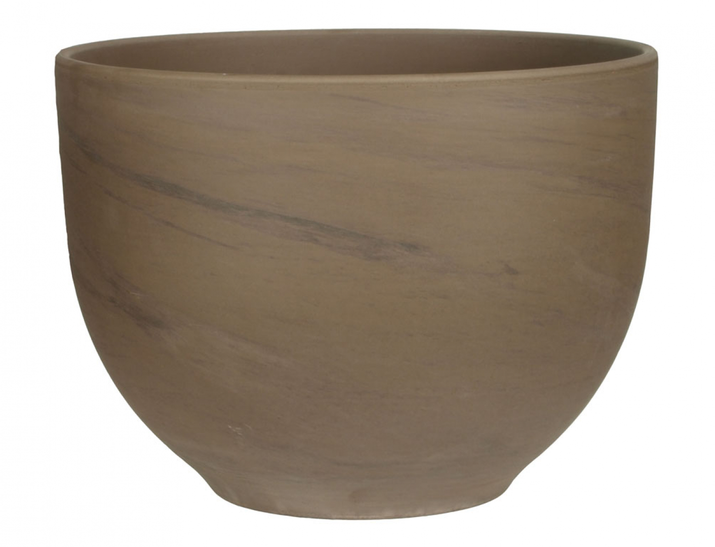 Keramický květník velmi elegantního, zaobleného tvaru, kruhového půdorysu, s jedinečným zemitě šedým zbarvením, s antracitovým mramorováním. Každý kus je originálně zabarvený v závislosti na složení jílu. Vhodný pro umístění do interiéru i exteriéru, neošetřený, s otvorem. Mrazuvzdorný. Průměr: 23 cm, výška: 17 cm. Barva: šedá s tmavě šedým melírem. Vhodnou podmiskou je CASINO d20cm - 002120čm.