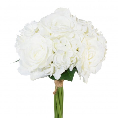Svazek / pugét růže a hortenzie; v. 34 cm; barva bílá číst celé