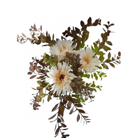 kytička gerber s přízdobou; 3 ks krémové gerbery + 2 ks přízdoby; původní výška gerber 57 cm - dá se zkrátit číst celé