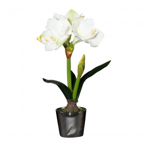 Amarylis v keramickém květináči v barvě kovu. Výška 47 cm. Velmi pěkné provedení. číst celé