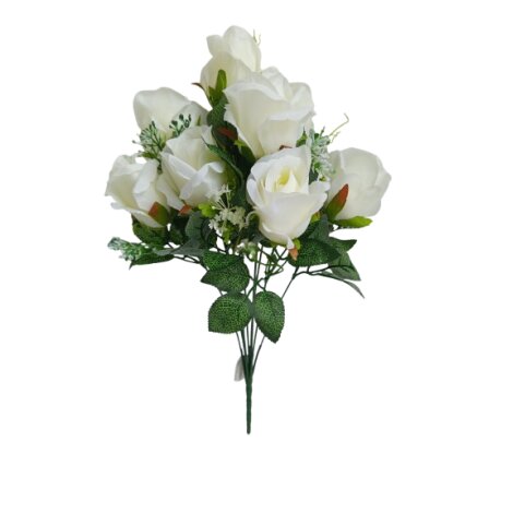 Kytice růže s přízdobou x 9 stonků/květů; v. 45 cm; materiál plast a textil. Pěkné. číst celé
