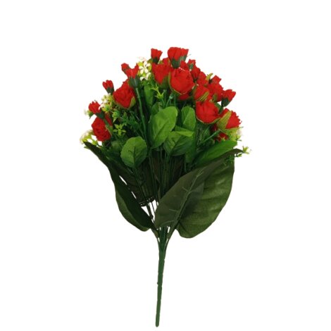 Růže - kytice poupat s přízdobou x 18 stonků; v. 44 cm; materiál plast a textil. Pěkné, bohatě kvetoucí. číst celé