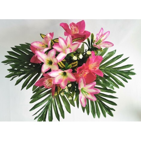 Kytice lilie s palmovým listem, růžová H360 růžová