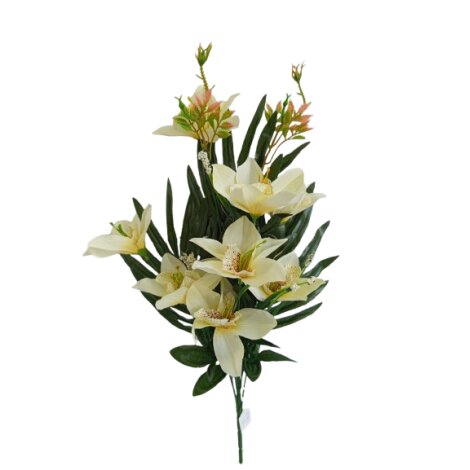 Kytice orchidej, přízdoba a palmové listy, celkem 10 stonků (8 květů). V. 50 cm. číst celé