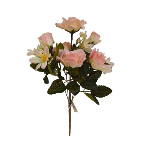 Růže kytička x7 stonků (7x květ růže + 4x lilie), výška 30 cm. číst celé