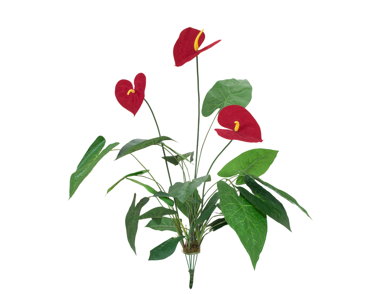 Dopřejte si doma nádech tropického deštného pralesa. 70 cm rostlina toulitky nepotřebuje žádná hnojiva, zalévání, vzdušnou vlhkost ani sluneční světlo. Celý rok vydrží svěží a rozzáří interiér sytými barvami. Květina má 71 zelených listů a 3 červeno-žluté kožovité květy. Rostlina je dodávána bez květináče. Ideální dekorace do každého interiéru.