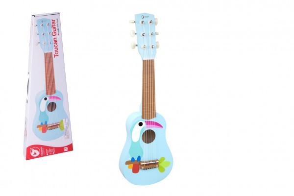 Dřevěná hudební kytara se šesti strunami s motivem barevného tukana, zaujme jistě každého malého kytaristu. Kytara výborně rozvíjí rytmus a učí soustředěnosti. Detailní zpracování s důrazem na pěkný zvuk potěší všechny malé muzikanty. Tato hračka rozvíjí u dětí jejich zručnost, hudební talent a sluch. Uspořádejte si doma malý koncert, založte hudební kapelu a ukažte všem, jak jste šikovní. Rozměry balení 55 x 19 x 7 cm. Vhodné pro děti od 3 let.