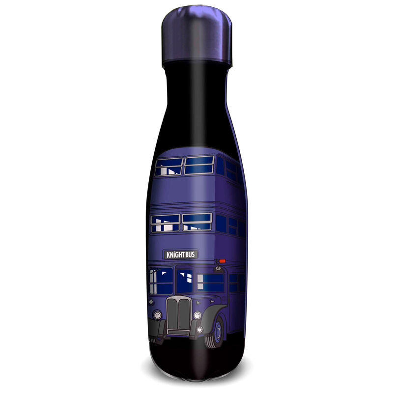 Fialová lahev s motivem záchranného autobusu z filmové a knižní ságy Harry Potter.