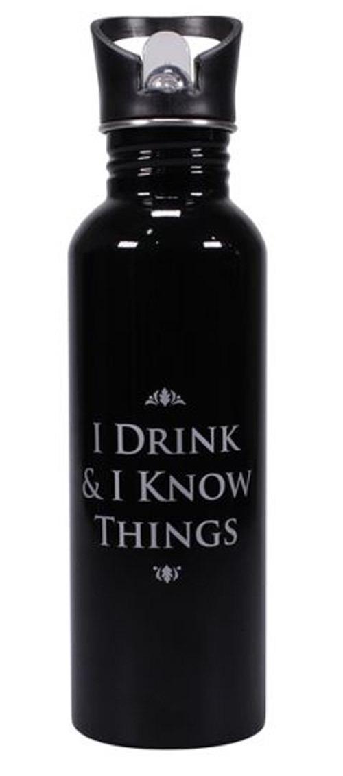 Černá nerezová láhev s textem "I Drink & I Know Things" ze seriálu Game of Thrones.