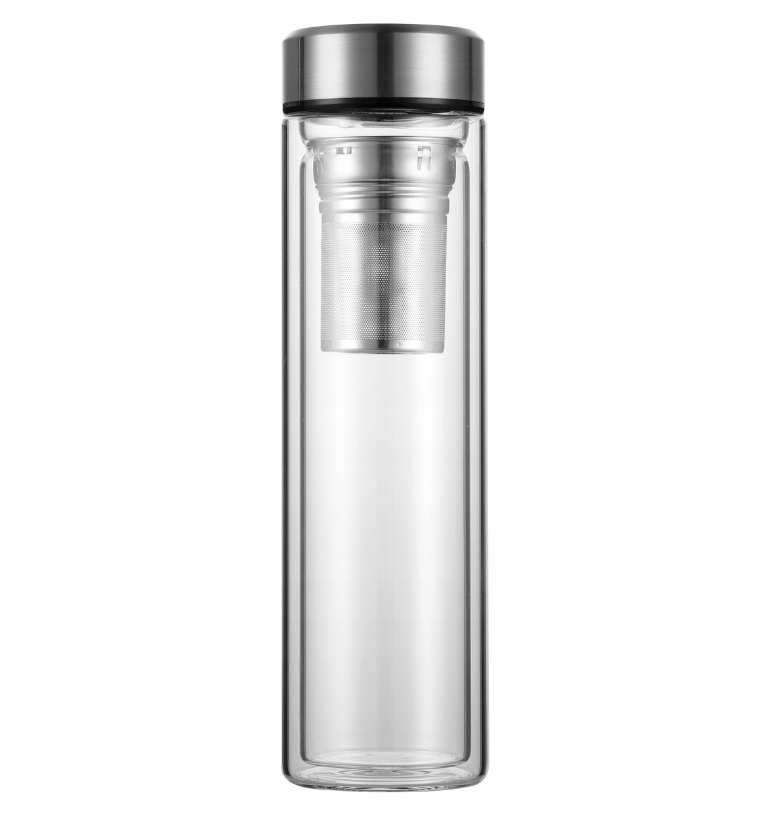 Tato láhev je vyrobena z vysoce kvalitního varného borosilikátového skla, které je díky své odolnosti vůči poškrábání a vysokým teplotám ideální pro každodenní použití. Díky dvojité stěně si můžete vychutnat horké nápoje bez obav, že by vás láhev spálila - zůstane příjemně na dotek, zatímco obsah zůstane dlouho teplý. Skleněná konstrukce také zaručuje, že chuť nápoje zůstane vždy čistá a nezměněná.