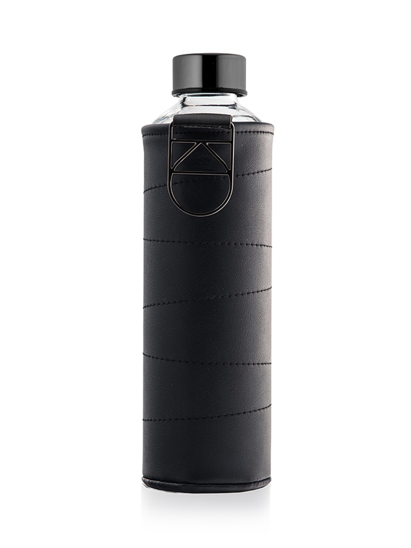EQUA Mismatch Graphite 750 ml designová luxusní ekologická skleněná lahev na pití s obalem z umělé kůže