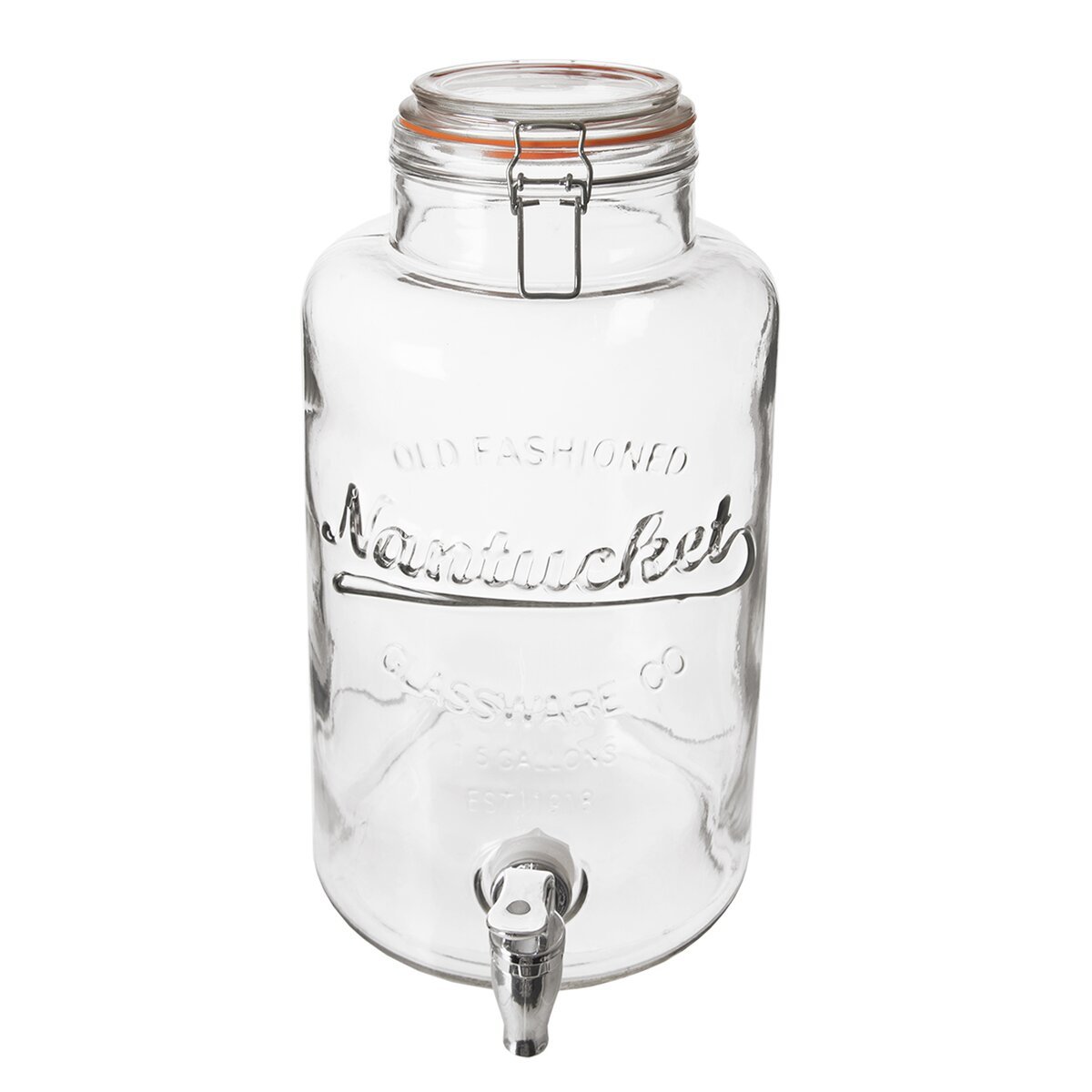 Láhev s kohoutkem na vypouštění tekutiny je vhodná na různé party bowle, ovocné šťávy, limonády. Široký plnící otvor pro snadné vkládání a vybírání ovoce i pro mytí. Kovový klip na upevnění víčka. Materiál: sklo, kov, plast, silikon. Zásobník není vhodný pro horké a sycené nápoje. Rozměry: pr. 19 cm, v. 33 cm, objem 6,7 l. Náhradní kohoutek + těsnění z naší nabídky 181730. Skleněná část lze mýt v myčce.