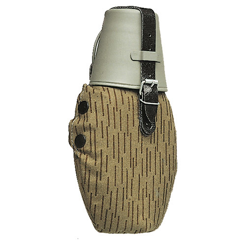 Nová polní plastová láhev používaná strašími jednotkami NVA. Plátěný obal v maskování NVA. Hliníkový kelímek. Upevnění na opasek řemením. Objem: cca 0,7 ltr číst celé