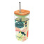 Quokka Liquid Cube - Skleněný hrnek 540 ml s brčkem z nerezové oceli (Tropical Toucans)