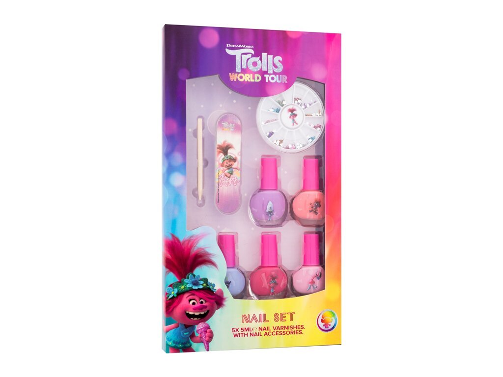 DreamWorks Trolls lak na nehty 5 x 5 ml + pilník na nehty + dřívko na nehtovou kůžičku + ozdoby na nehty