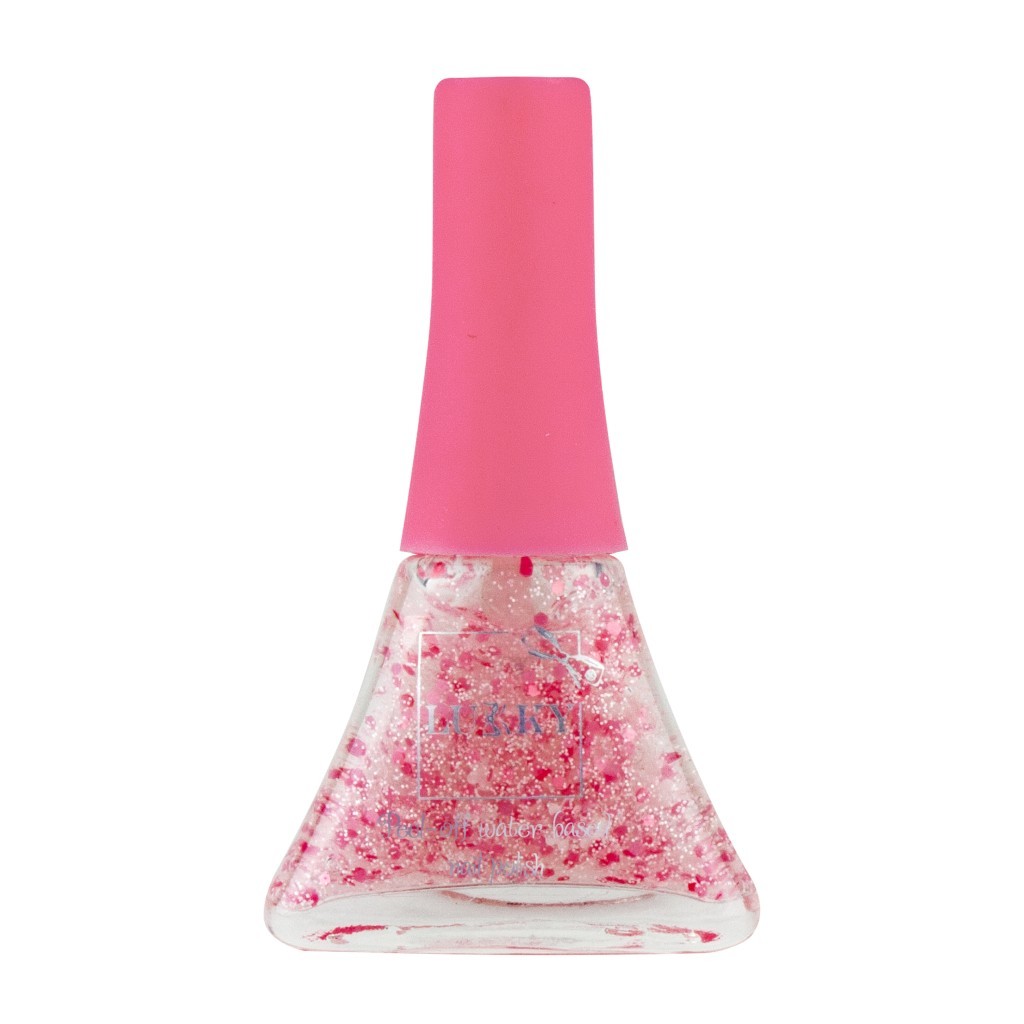 LUKKY slupovací lak na nehty na bázi vody se třpytkami. K odstranění laku není potřeba odlakovač. Lak jde jednoduše sloupnout. Lahvičku nelze vylít. Výrobek je vhodný pro děti od 3 let.
