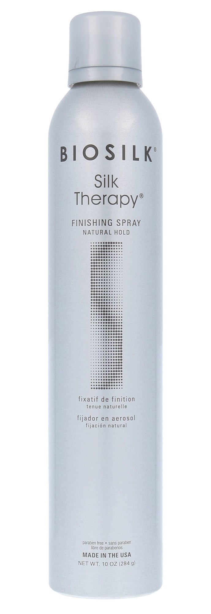 Lak na vlasy **Farouk Systems Biosilk Silk Therapy Finishing Spray Natural Hold**. Lak Farouk Systems Biosilk Silk Therapy Finishing Spray pro přirozené zpevnění účesu. Lak Silk Therapy Finishing Spray obsahuje přírodní hedvábí a bylinné výtažky, které vlasy vyživují a pomáhají zpevňovat účes. Zároveň vlasy chrání před vlhkostí, krepatění a UV paprsky. Rychleschnoucí lak nelepí a snadno se vyčesává. **Použití**: Aplikujte rovnoměrně na suché vlasy.