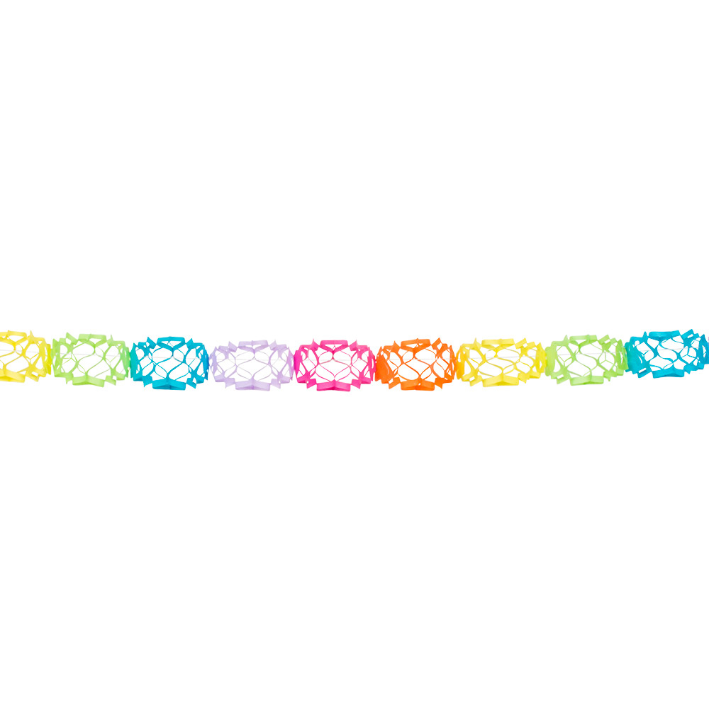 Začněte párty s touto barevnou papírovou girlandou. Girlanda je dlouhá 6 metrů a je ideální jako dekorace k narozeninám.