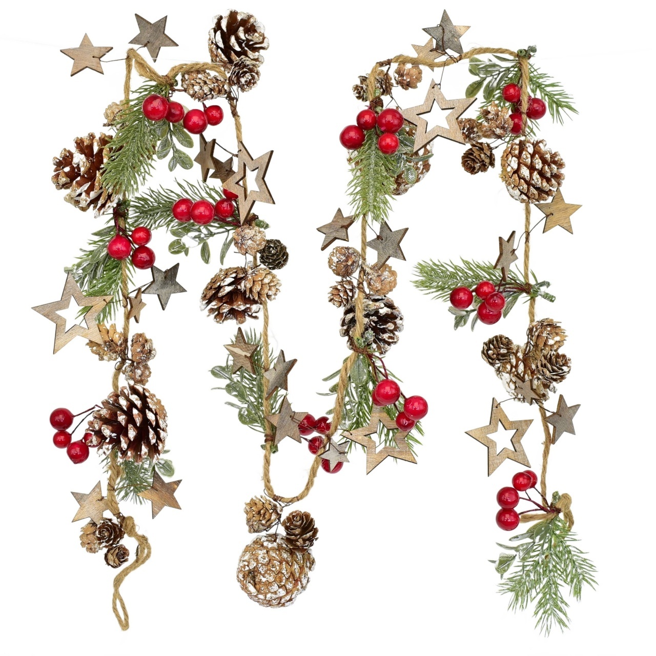 Vytvořte si domov plný kouzla a útulnosti s naší girlandou s bezinkami a hvězdami! Tato jedinečná dekorace o délce 150 cm přináší přírodní krásu přímo do vašeho interiéru. Girlanda je pečlivě zdobená dřevěnými hvězdami a umělými bezinkami, což jí dodává šarm a elegance, kterou si zamilujete. Navíc, smrkové větvičky a přírodní šišky umocňují autentický vzhled a pocit přírody ve vašem domově.
