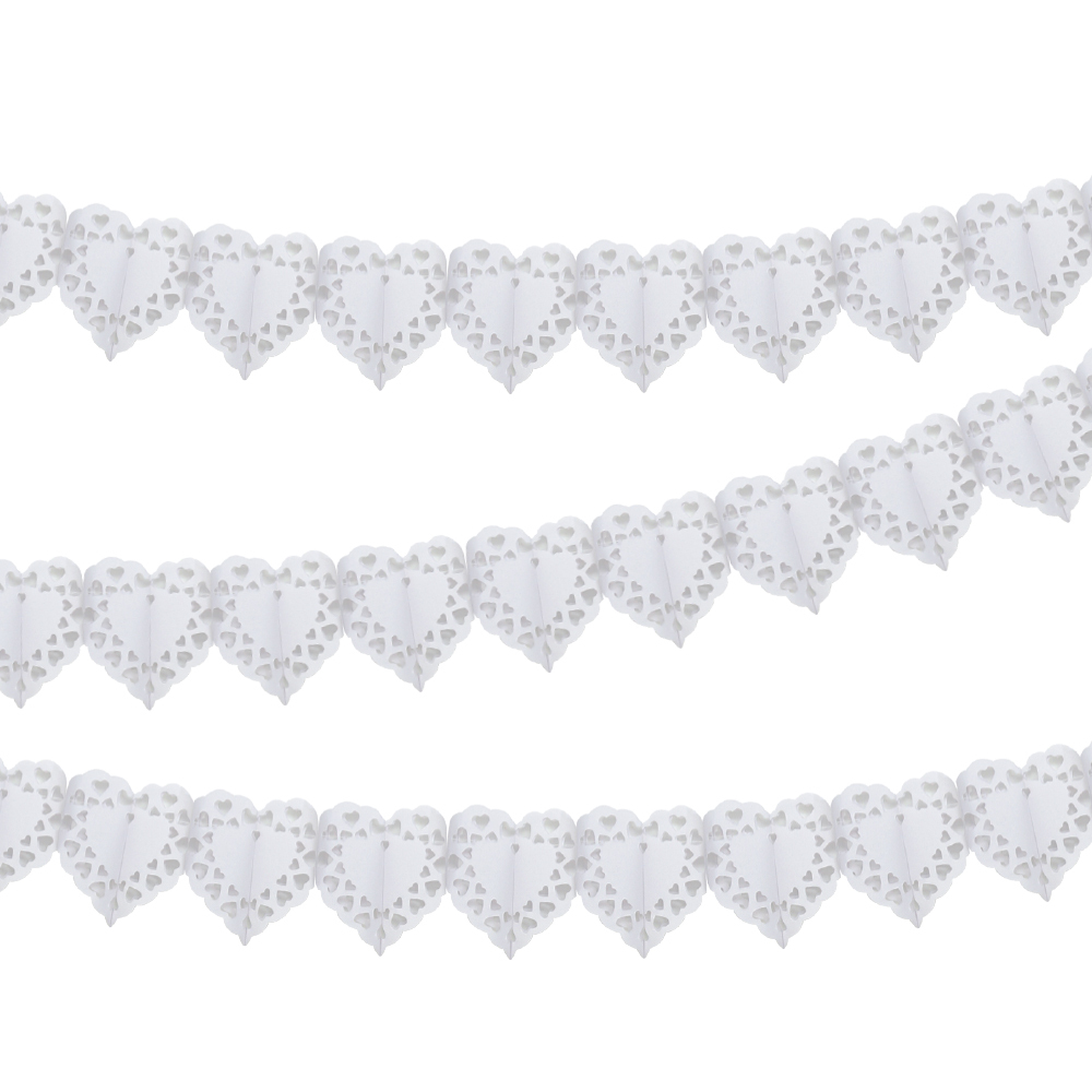 Girlanda Bílá srdce, papírová, 3 m. Použití: dekorační účely, večírky a karnevaly. Upozornění: Nevhodné pro děti do 3 let. Není to hračka. Doporučuje se dohled dospělé osoby (hrozí riziko uškrcení). Umístěte mimo dosah ohně. číst celé