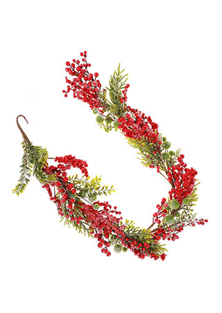Girlanda ojíněná, červené jeřabiny a zelené větvičky