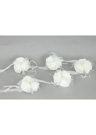 Girlanda z 5svazků růžiček po 3 květech na stuze , barva bílá , umělá dekorace