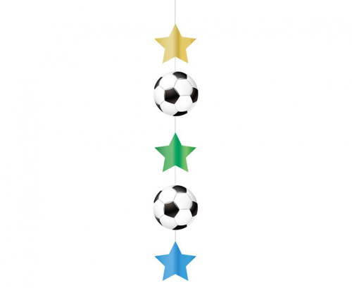 Závěsná dekorace s fotbalovými míči a hvězdičkami. Stačí ji jednoduše zavěsit do prostoru. Zaručeně přiláká pozornost na každé fotbalové události nebo tématické party. Rozměry: 150 cm