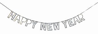 Dekorative Girlande mit 12 Glitzerbuchstaben, fertig zum Aufhängen, SchriftzugHappy New Year auf einer schwarzen Satinkordel , Länge 2,4 m, Höhe Buchstaben: 90 mm
