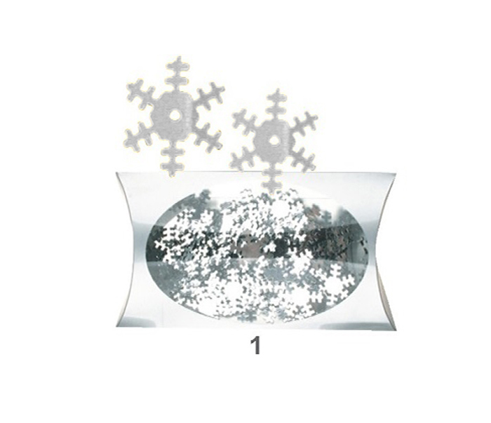 Konfety vločky stříbrné 1,8cm v krabičce 20g, 1925-01