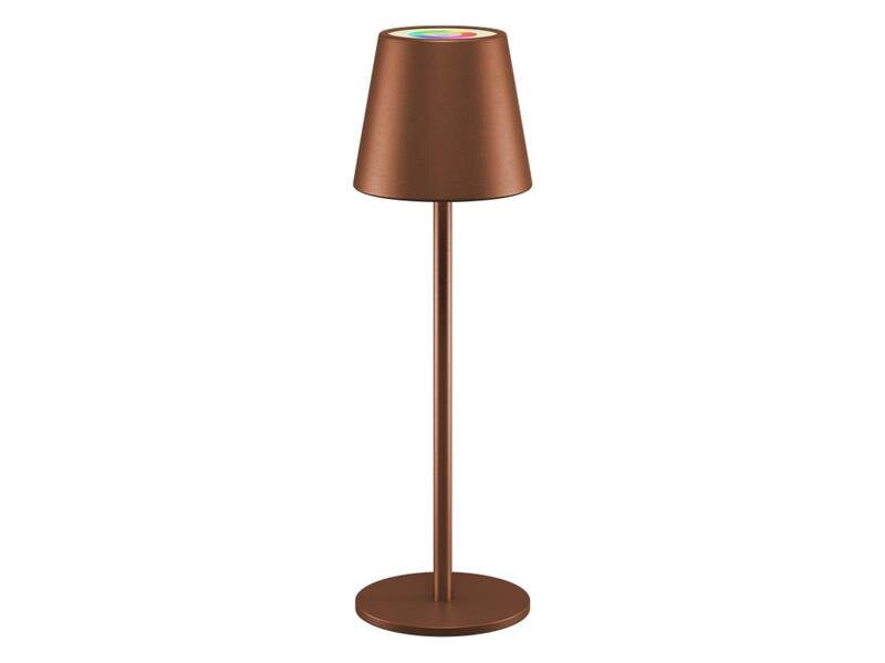 Bezdrátová LED stolní lampa RGBW Stolní lampa se svým minimalistickým skandinávským designem zušlechtí každý obývací pokoj, ložnici nebo jídelnu a na každé zahradní párty se stane vizuálním výrazem. Inovativní světlo Goobay, vyrobené z vysoce kvalitního pevného kovu, je zárukou kvality a odolnosti. Lampa vyniká elegantním dotykovým ovládáním a vestavěnou baterií, která nabízí bezdrátovou flexibilitu pro použití na jakémkoli místě Díky svému modernímu designu se lampa hodí do každého interiéru: jako obývací pokoj nebo noční lampa, jako poutač v kanceláři nebo jako stolní lampa v restauracích LED lampa se přepíná mezi zapnutím a vypnutím a také umožňuje četné barevné možnosti RGBW lehkým dotykem na horní straně a stmívání dlouhým dotykem Vysoce kvalitní lithiová baterie 18650 zajišťuje mimořádně dlouhou životnost a vynikající výdrž až 6 hodin při 100 % jasu a až 20 hodin při 10 % jasu Díky ochraně proti stříkající vodě (třída ochrany IP44) se stolní lampa hodí také na terasu, balkon nebo zahradu. Stínidlo a základna jsou vyrobeny z robustního kovu - pro vysokou stabilitu bez převrácení a dlouhou životnost Vč. USB nabíjecí kabel (1 m, USB-C™ na USB-A) pro snadné nabíjení přes USB nabíječku, notebook nebo powerbanku