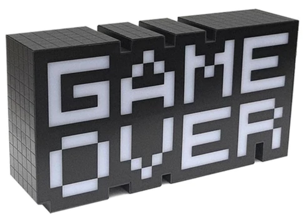 Dekorativní lampa vyvedena ve tvrau Game Over.