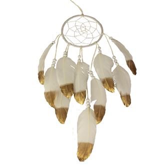 Lapač snů. Lapač snů má průměr 15,7 cm, tloušťku 0,6 cm, celková délka 59 cm. Barva : kombinace bílá s hnědou. Materiál : textil, peří. Lapače snů se zavěšují volně do místnosti nebo přímo za hlavu spícího. Podle staré legendy severoamerických indiánů se špatné sny zachytí v síti lapače a ráno jsou zničeny denním světlem. Ty dobré sklouznou po peříčku zpět do duše spícího.
