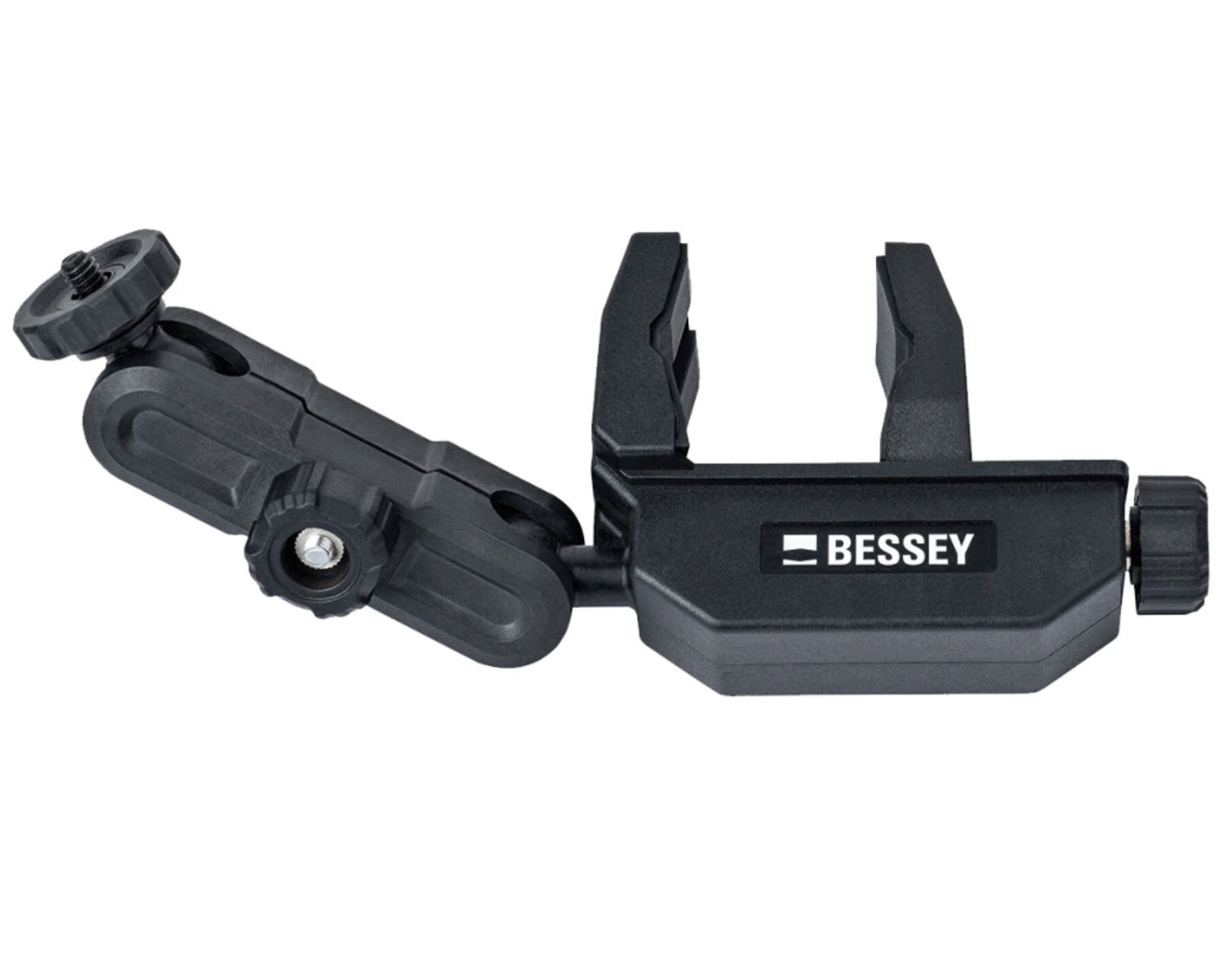BESSEY - Multifunkční / laserový držák STE-LH- držák se 1/4" upínacím závitem pro upevnění pomůcek, jako je např. laser, kamera, stavební světlo- lze použít bez nářadí na kulaté (0-45 mm) a úhlové (0-55 mm) podpěrné díly, jako jsou např. stropní a montážní podpěry, profily, žebříky- otočný držák L se dvěma osami otáčení: 360° vedle upevňovací svorky, 180° na upínacím závitu