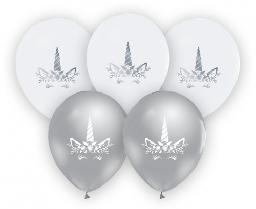 Latexové balonky stříbrná - bílá Jednorožec 30 cm - 5 ks