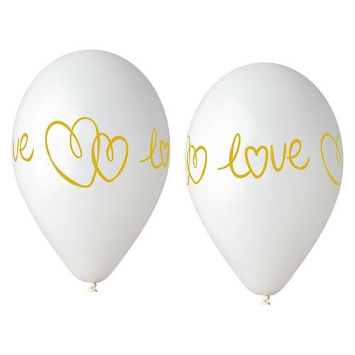 Svatební balonky bílé s potiskem srdce a Love 33 cm - 6 ks