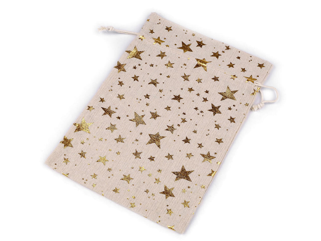 Dárkový pytlík hvězdy metalické 20x30 cm lněný - 1 ks - 2 režná zlatá